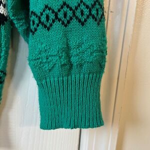 Vintage 90s Teal Fair Isle Knit Sweater USA Grandpa Core Cottagecore L