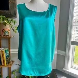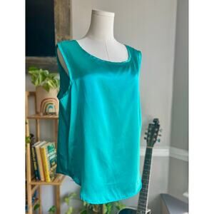 Vintage 90s Teal Green Satin Sleeveless Slip Top Size Large XL