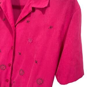 Vintage 90s Teddi Pink Embroidered Cottage Button-Up Collared Button-Up Short Sleeve Shirt