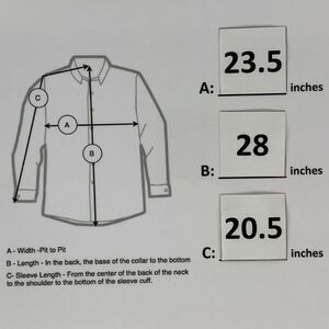 Sleeve Length 20.5" - From the center of the back of the neck to the shoulder to the bottom of the sleeve