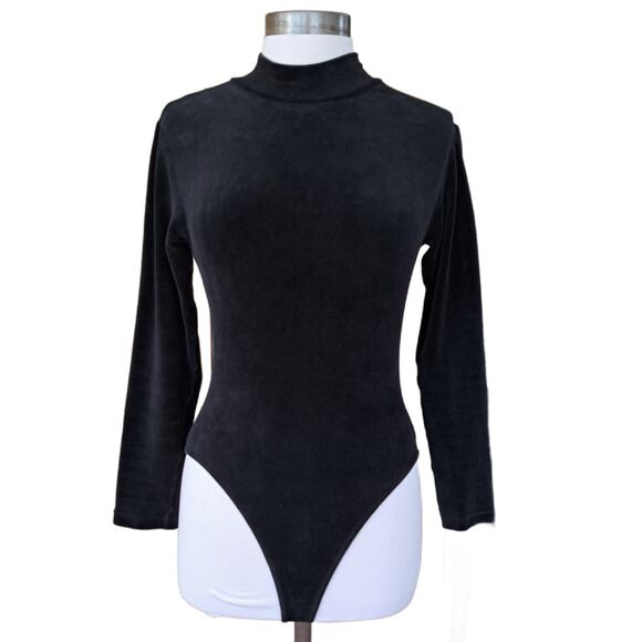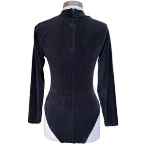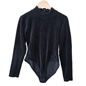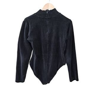 Vintage 90s The Limited Black Velour Bodysuit Mock Neck Long Sleeve