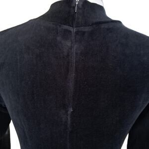 This rare vintage 90s black stretch velvet/velour bodysuit by The Limited features a mock neckline and long sleeves. Back zip. Snaps at the bottom. Very stretchy. Fabric content not provided but I'd guess more of a cotton/blend with spandex. Good vintage condition. Small repair at the bottom of the zipper. No size tag.