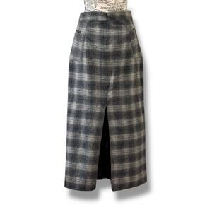 Vintage 90s The Limited Size 2 Gray Wool Plaid Maxi Pencil Skirt - Made in Italy