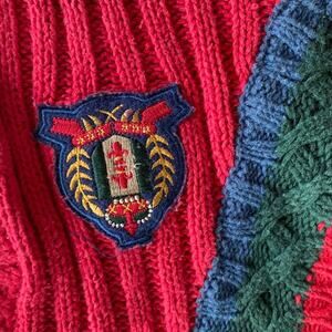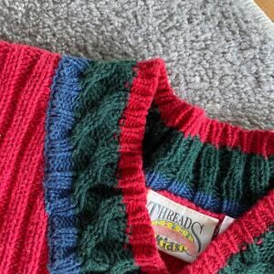 Vintage 90s Threads Clothing for Kids Sweater. Toddler boy size 4T. Cozy pullover v-neck sweater. Red with blue and green. Decorative crest on the chest. A wardrobe staple of the 90s! Typical wear; no stains, holes, etc. See photos for measurements.