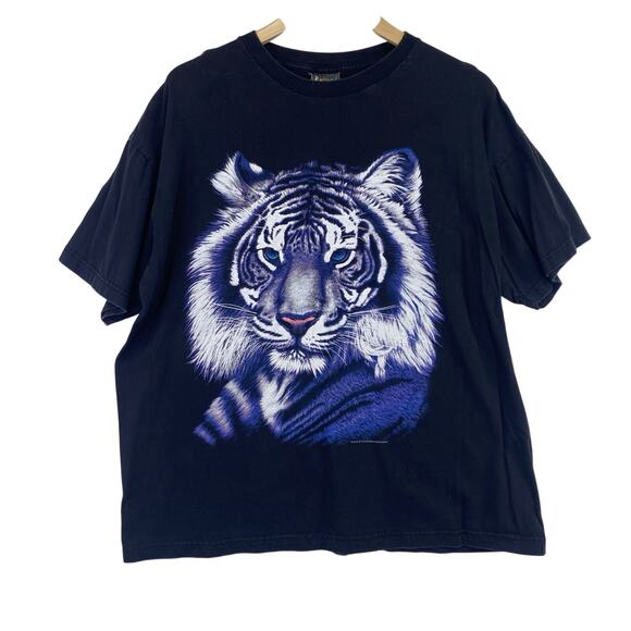 Vintage 90's Thunder Sportswear White Tiger Graphic Print T-Shirt Sz XL Black
