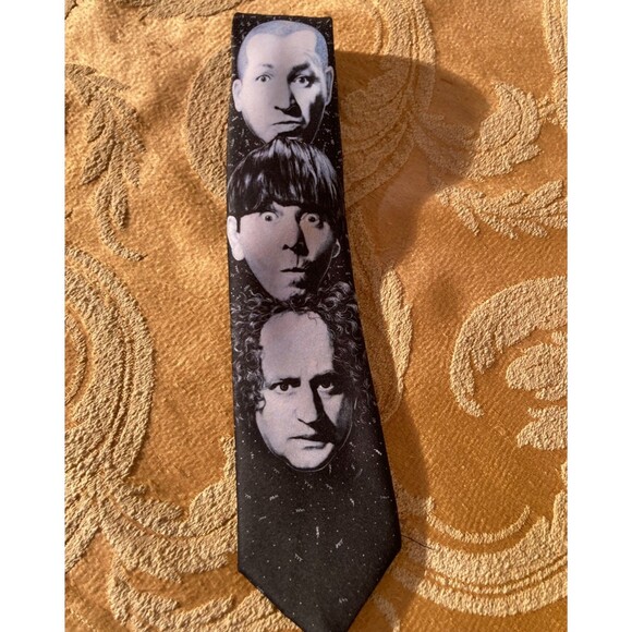 Vintage 90s Tie 1990s Three Stooges Larry Moe Curly Black & White Funny Necktie