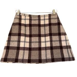 Vintage 90s Tocca Plaid Mini Skirt 4 Brown Cream Wool Lined Preppy Academia Y2K
