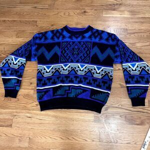Vintage 90s Todays News Rainbow Geometric Knit Baggy Crewneck Sweater XL