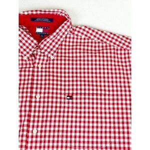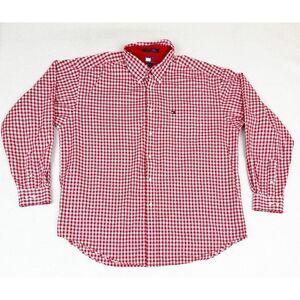 Vintage 90s Tommy Hilfiger Button Front Shirt XL Checkered Tablecloth Red White