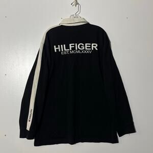 Vintage 90s Tommy Hilfiger Embroidered Black Long Sleeve Polo Men’s Size XL