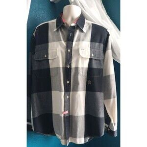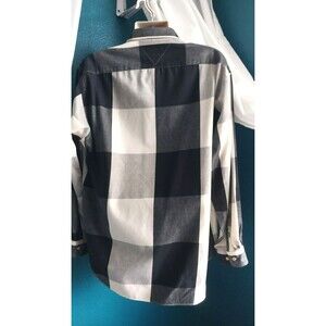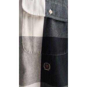 Vintage 90s Tommy Hilfiger Men's Plaid Button-Down Shirt Large Black/White