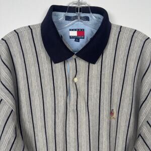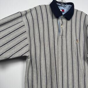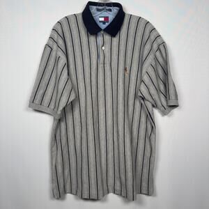 Vintage 90's Tommy Hilfiger Men's Polo Striped Gray Short Sleeve Size XL