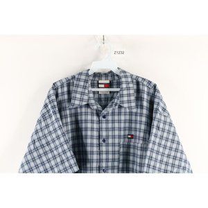 Vintage 90s Tommy Hilfiger Mens XL Checkered Plaid Collared Camp Button Shirt