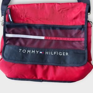 Vintage 90s Tommy Hilfiger Messenger Lap Top Bag Red Preppy Academic Grunge