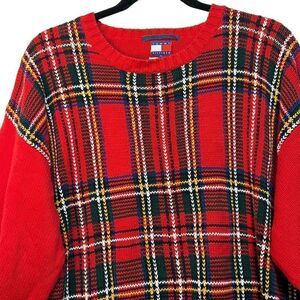 Gently used! Vintage 90s Tommy Hilfiger tartan plaid pullover sweater in red green and blue colors. Very thick sweater. In excellent pre-loved condition with no flaws. 100 percent cotton