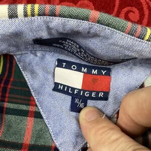 Vintage 90s Tommy Hilfiger Shirt Mens XL Green Plaid Button Down Crest Logo