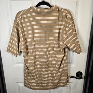 Vintage 90's Tommy Hilfiger Striped Polo Shirt Brown Tan Logo Size Large Y2K