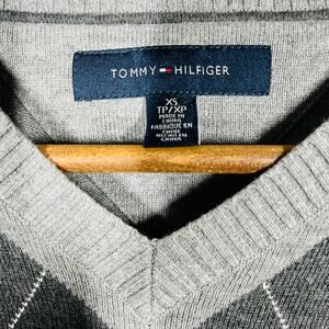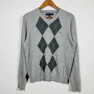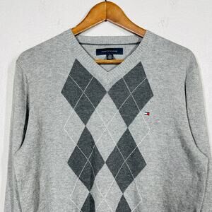 Vintage 90s Tommy Hilfiger V Neck Light Argyle Sweater - XS