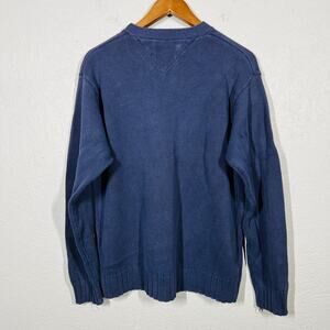 Vintage 90s Tommy Hilfiger V Neck Tight Knit Pullover Top Sweater Blue - M