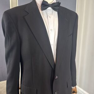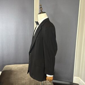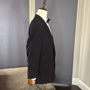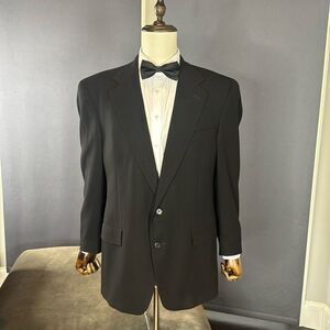Men’s Vintage Tommy Hilfiger Black Formal Suit Jacket Blazer with Notched Lapel and Two Button Closure