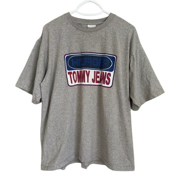 Vintage 90's Tommy Jeans Hilfiger Gray T-Shirt Size Large