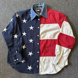 Vintage 90s Tommy Jeans Hilfiger Woman’s Size 8 LS Button American Flag Shirt