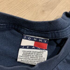 Vintage 90s Tommy Jeans T-Shirt Mens Large L Navy Blue Flag Spell Out Hilfiger