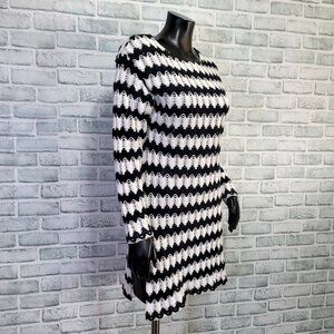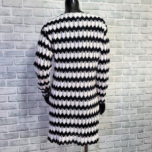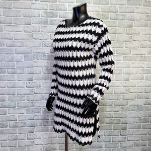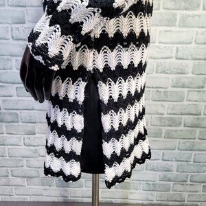 Vintage 90s Top Elements Black White Chevron Crochet L/S Tunic Top Side Slits