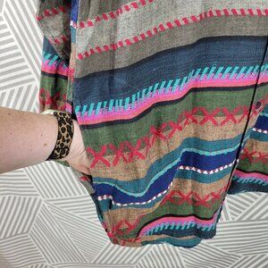 Vintage 90s Top Shirt Button Up Size Medium Aztec Southwest Pockets Tunic