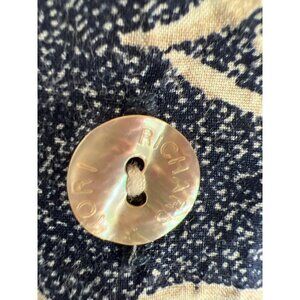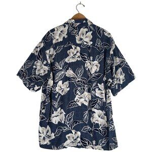 Vintage 90s Tori Richards Mens Size L Navy Hawaiian Shirt MOP Logo Buttons Surf