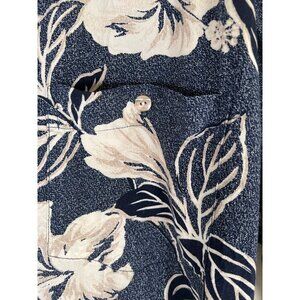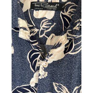 Vintage 90s Tori Richards Mens Size L Navy Hawaiian Surf Shirt Tropical Foliage Print. Mother of Pearl (MOP) logo Buttons.