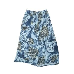 Vintage 90s Tradition blue rose floral print midi skirt L