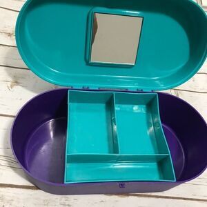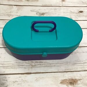 Vintage 90's Travel Case Box Makeup Teal Purple Cosmetic