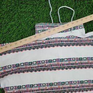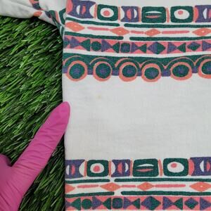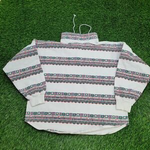 This vintage 90s tribal surfer sweatshirt features a baggy, boxy fit with a striped Aztec print, perfect for retro streetwear lovers. Made in the USA, it comes in size medium (24x24) with a collared 1/4 snap button design and a Gimmie a Break (GAB) tag. A must-have for 90s fashion enthusiasts!