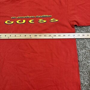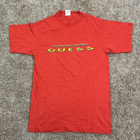 Vintage 90s T-shirt Guess USA size small orange spell out logo blank