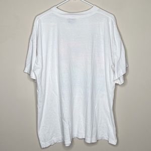 Good Pre Owned Vintage Condition! Gently Used with a few signs of normal wear. No Major Flaws! A few tiny hole by bottom hem. Little cracking to graphic. A little hole underneath graphic. See Photos!
