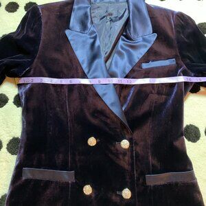 Vintage 90s Tuxedo 2 Pc Suit Set Navy Velvet Blazer Jacket Satin High Rise Pants