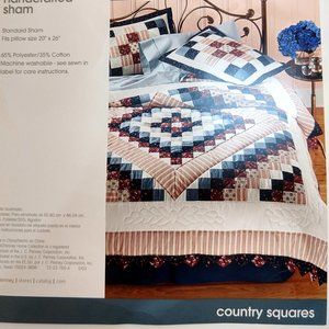 Vintage 90s Twin Patchwork Quilt & Sham Set Floral Handcrafted Country Squares