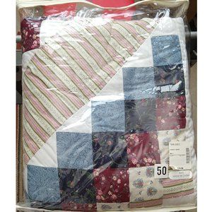 A JCPenny's Home Collection handcrafted floral patchwork twin quilt, in the "country squares" pattern. 66"x 86", machine washable. Vintage, from the 1990s!