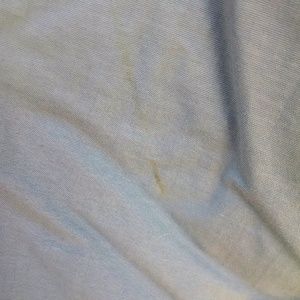 Freshly cleaned but have a small dirt stain on the front right leg, minimally noticeable