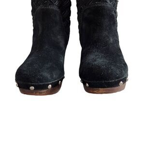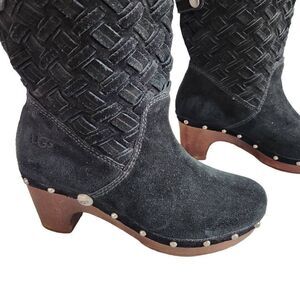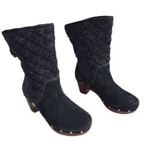 Vintage 90s UGG Australia Lynnea Arroyo black woven leather stud wood heel boot
