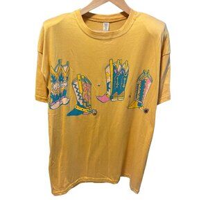 Vintage 90s UNBRANDED Yellow Cowboy Boot Graphic Oversized Tee SZ XL