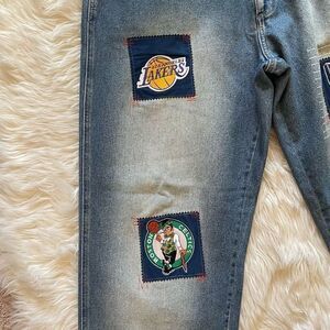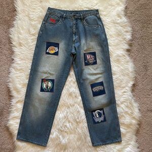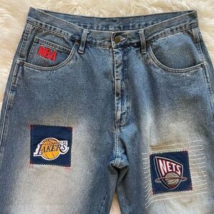 Vintage 90s UNK NBA Denim Jeans Embroidered Patches Hip Hop Men’s Size 34 Lakers
