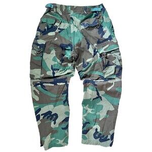 Vintage 90s US Army Camo Cargo Pants Adjustable. Great pants in great condition, average amount or wear and fade to be expected from age but these are super well kept and have minimal flaws. A couple of paint spots which I have pictured but other than that in great vintage condition Dont miss out on these sick vintage camo cargos!