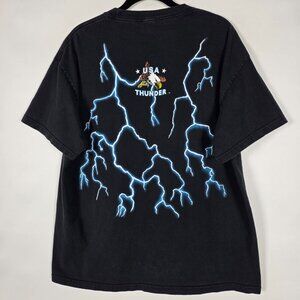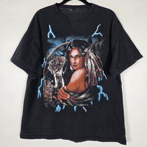 Vintage 90s USA Thunder Wolf Native Mens XL Short Sleeve Black Graphic T Shirt