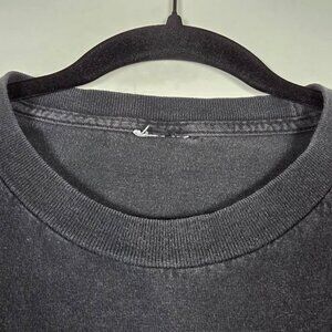 Shirt has light fading and graphics have light cracking, pictures included of condition. Size tag missing, measurements included in photos and description.