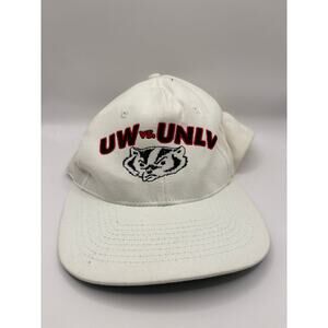 Vintage 90s UW Vs UNLV Wisconsin Las Vegas Snapback Hat OSFA White Embroidered