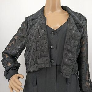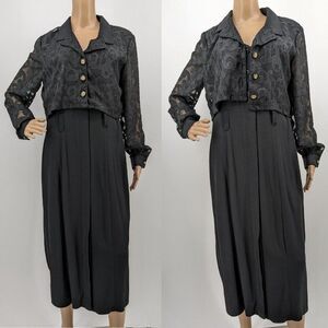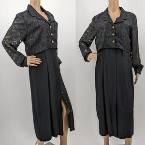 Vintage 90s Ultra Cocktail Dress Midi Sheer Lace Black Gold Whimsigoth Size 10