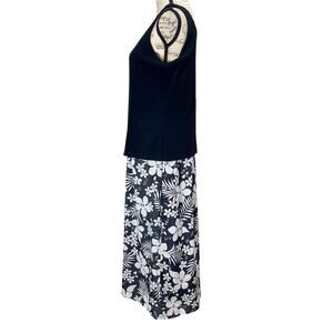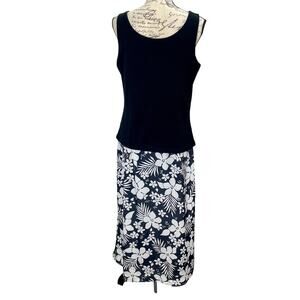 Vintage 90s Ultra Dress NY Ribbed Knit Tank Dress Mixed Media Floral Y2K Sz 14