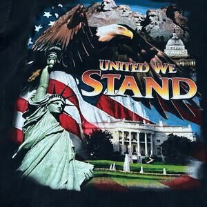 Vintage 90s United We Stand T-Shirt Large Black USA Flag Eagle SingleStitch Flaw